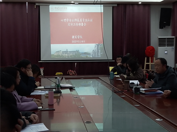 2022年2月18日下午,教育学院在特立北208会议室召开心理学专业师范类专业认证迎评工作部署会。教育学院刘澍心书记、刘丽群院长出席了会议并发表了重要讲话,黄月胜副院长主持会议,心理学专业全体教师参加了本次会议。