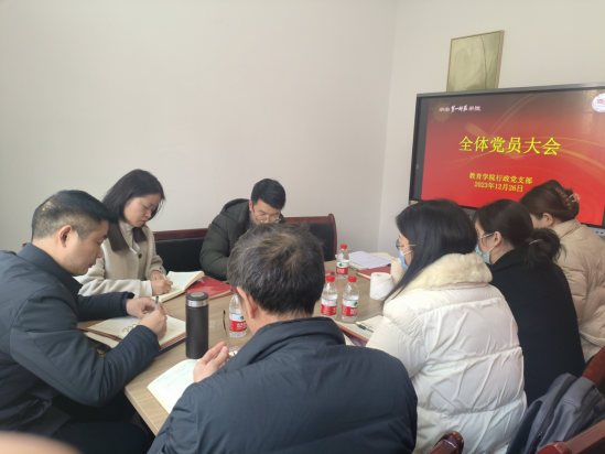 为进一步加强党员队伍教育管理,提升党员能力素质,增强党员干部和基层党组织作用,教育学院行政党支部于2023年12月26日在特立北201会议室召开全体党员大会。会议由行政党支部书记李令主持,全体党员参会。