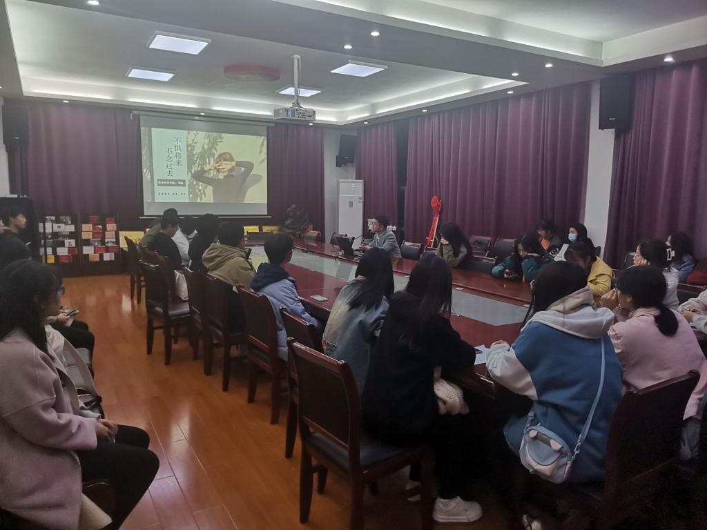 11月11日晚,学院在特立楼北208会议室举行“不念过去不惧将来”心理健康讲座,院心理专干邓魁老师主讲,2019级2020级2021级三个年级的心育委员参加。