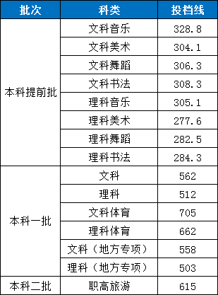 2019年我校湖南省各科类投档线