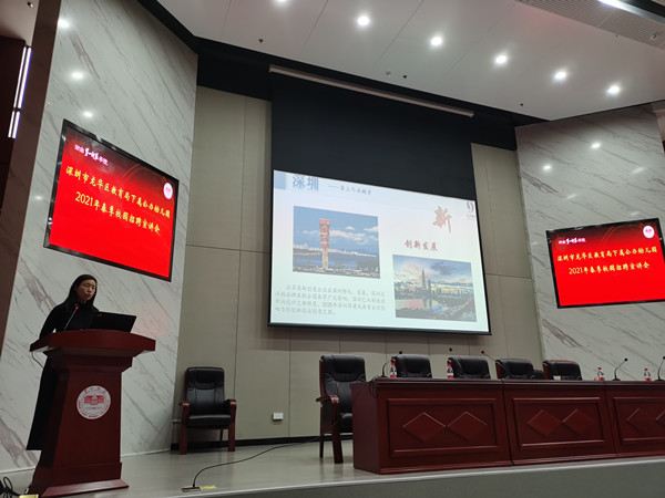 为贯彻我校就业工作“走出去,引进来”的就业方针,3月19日下午,教育科学学院在创新创业大楼228会议室接待了深圳市龙华区教育局甘露一行,此次龙华区教育科学研究院附属幼儿园园长甘露一行代表深圳市龙华区教育局来我校举行2021年春季校园招聘会。教育科学学院党总支书记陈天涯、院长胡春光、学工办主任刘军以及学院学前专业带班辅导员到场参加,学院学前教育专业四个年级200余名同学到场聆听。教育科学学院党总支副书记张志新主持会议。