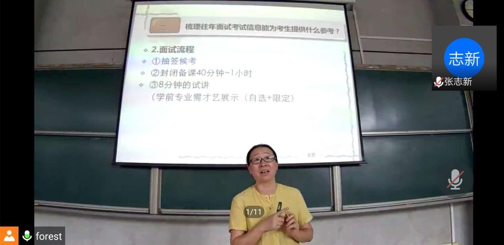 针对我院学生专业特点,很大一部分毕业生正在参加今年教师招聘考试,为切实提升毕业生应对教师招聘考试的面试能力,打通教师招聘考试最后一个重要环节,帮助同学们更好就业。我院于6月12号下午2点半特邀教师招聘考试面试专家尹桂荣副教授为毕业生开展考编面试培训讲座。院党总支张志新副书记、学工办主任刘军、部分辅导员和30余名毕业生现场进行了聆听。此次讲座同步直播,2020届非定向班毕业生和2021届非定向班同学也参与了网络观看。