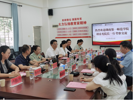 在琼台师范学院,副校长兼教师教育学院院长王安兴热情接待来访一行。双方展开座谈,王安兴就琼台师范学院发展历史、学校硕士点申报、教师教育学院专业建设进行了简要介绍,胡春光表示两校都是由书院演变而来,今年又同时申报硕士授权单位,在诸多方面有着相似之处,双方可以互学互鉴。胡春光就我校办学历史、办学特色,办学理念,以及教育学院的专业建设、学科建设、人才培养等与琼台师范学院与会人员进行了交流。琼台师范学院学前教育学院院长庄小满教授就学院的产教融合作了专题介绍。