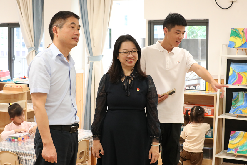 在光明区,光明区教育局区委教育工委委员,光明区教育局党组成员、副局长高伟波、光明区教育局学前教育科科长石钟琴等热情接待了调研组。双方就光明区学前教育事业的快速发展、学前教育人才培养与需求等进行深入交流。光明区正在蓄势聚力建设世界一流科学城,学前教育事业发展迅猛,亟需高层次人才的加盟。调研组先后参观了中山大学深圳附属学校澜庭幼儿园、中山大学深圳附属学校云科幼儿园、中山大学深圳附属学校。同时,调研组还看望了在光明区就业的校友,了解他们在深圳发展良好,并代表母校向他们表达了关心和慰问。