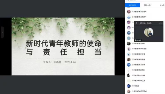 最后,周春勇校长谈及自己总结的固定思维模式与成长思维模式的区别,青年教师成长方向图,被动成长法等诸多理论,一一向同学们展现了如何去做好新时代青年教师的使命与责任担当。