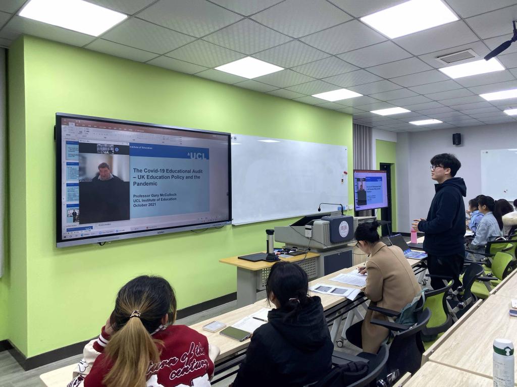Gary McCulloch教授用新冠肺炎疫情对于英国以及世界的影响,从社会、经济方面做引入,谈到疫情给教育领域的全球人权治理带来了新的重大挑战。并借助《2030年议程》中关于“可持续发展”的观点,介绍了英国教育目前存在的不平等问题,提出了七个目标,以及实现这些目标的三个关键途径。另外,他指出,英国二十世纪的重大教育改革总是紧随战争和其他政治动荡之后,这种创伤会导致新的挑战和机遇,以至于产生意想不到的关键成果。在互动讨论环节,Gary McCulloch教授与师生们就“英国教育中性别歧视问题”“立法教育的义务与人权”“历史遗留问题”“改革的偶然与必然性”“对‘去学校化’的看法”等问题展开了热烈的讨论,大家都收获颇深。