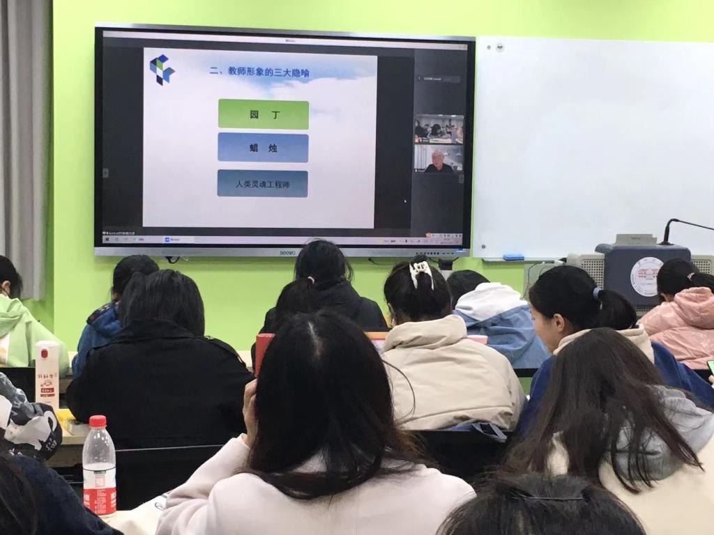 11月28日晚7点,华中师范大学教育学院二级教授、博士生导师王坤庆教授以远程线上授课的方式在特立北104智慧教室,围绕“知识分子——教师形象的应然追求”这一主题,为我院19级和20级“润之班”学生进行了一场精彩的学术讲座。讲座由教育学院院长刘丽群教授主持,教育学院石慧、陈华仔、马克思主义学院罗贵绒等老师以及19级、20级“润之班”全体成员参与了本次讲座。