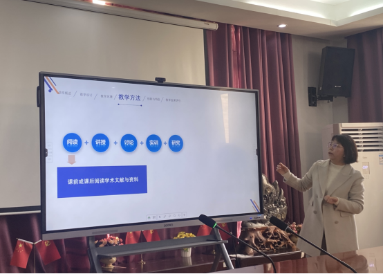 张燕丽主任从课程概述、教学设计、教学环境、教学方法等几个方面全面阐述了《现代教学媒体理论与实践》这门课程线上线下混合式教学的开展情况,着重介绍了“阅读、讲授、讨论、实训、研究”一体化的课程教学模式,展现了强化师生对话、生生对话、自我对话的课程创新与特色。通过线上教学提供大量的拓展资源以支持学生学习,包括各种论文、文献、案例、视频等;线下教学设计了丰富多样的教学活动,如分组讨论、实践教学、合作项目等,以激发学生的学习兴趣和学习主动性。