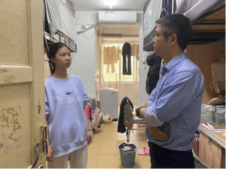 在走访过程中,朱承学书记和张志新副书记走进每一间宿舍,与同学们围坐在一起,耐心倾听他们的声音。他们细致询问同学们近期的学习进度,关心同学们是否适应了大学的学习节奏,还特别关注同学们在生活中的适应情况,了解大家是否遇到实际困难。此次走访的重点是学生在学业规划和职业发展方面的困惑。朱承学鼓励同学们珍惜大学时光,强调专业积累的重要性,并着重提到创新思维的培养。他指出,大学是知识的殿堂,也是培养创新能力和综合素质的关键时期。希望同学们在学习中不断探索,勇于创新,为未来的发展打下坚实的基础。