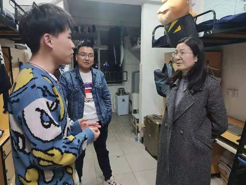 蒋蓉副校长看到大部分寝室的同学们都在认真备考教资,对认真学习的同学进行表扬,祝愿努力备考的同学们取得好成绩。