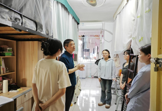 在走访过程中,院领导详细询问了学生的日常生活、学习压力及发展规划等方面的问题,并鼓励学生们要积极面对生活中的困难,调整好心态,努力学习,为自己的未来打下坚实的基础。同时,院领导还强调了寝室文化建设的重要性,希望学生们能够营造一个和谐、温馨的寝室环境,共同成长、共同进步。