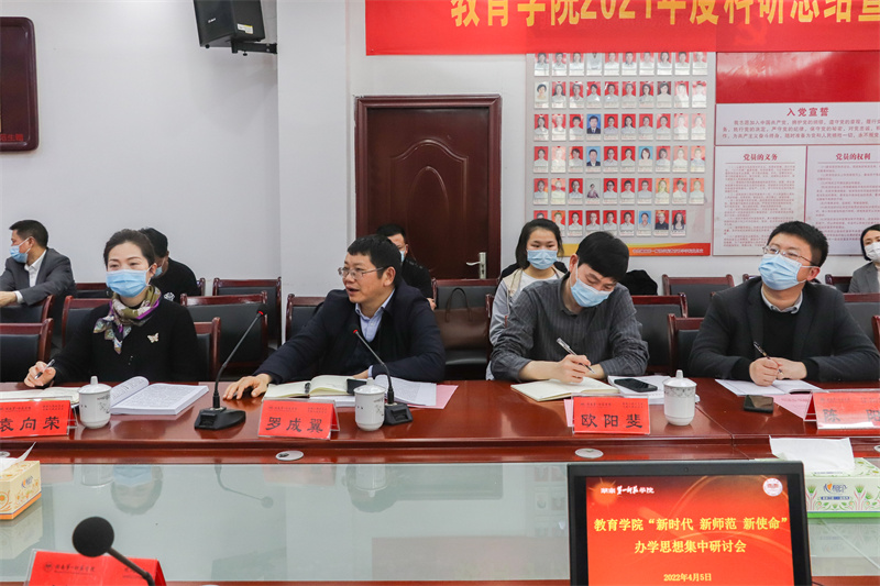 4月5日下午,教育学院在特立楼北208会议室召开了“新时代 新师范 新使命”办学思想大讨论集中研讨会,校党委书记罗成翼一行莅临我院指导,学院全体教师参加了本次研讨会。