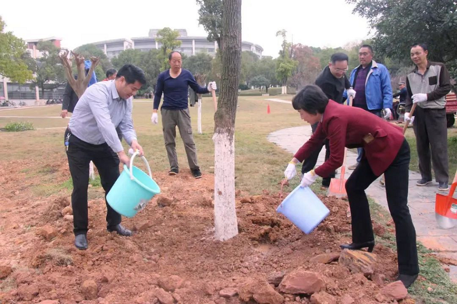 阳春三月,春风拂面,又到一年一度植树播绿的好时节。教育学院在田径场外草坪处开展“春之日”志愿服务活动。bevictor伟德官网校长童小娇、副校长周发明、后勤处处长周大庆、副处长成海英、教育学院党委书记刘澍心、党委副书记张志新、学工办主任刘军、团委书记孙三元、全体辅导员及学生志愿者参加了此次活动。