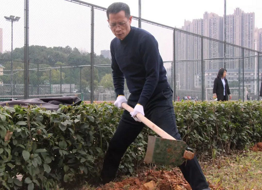 3月11日上午,童校长宣布“春之日”志愿服务活动正式开始。领导老师们和同学们三五个人一组,奋力挥舞锄头,仔细拔除杂草,干得热火朝天。