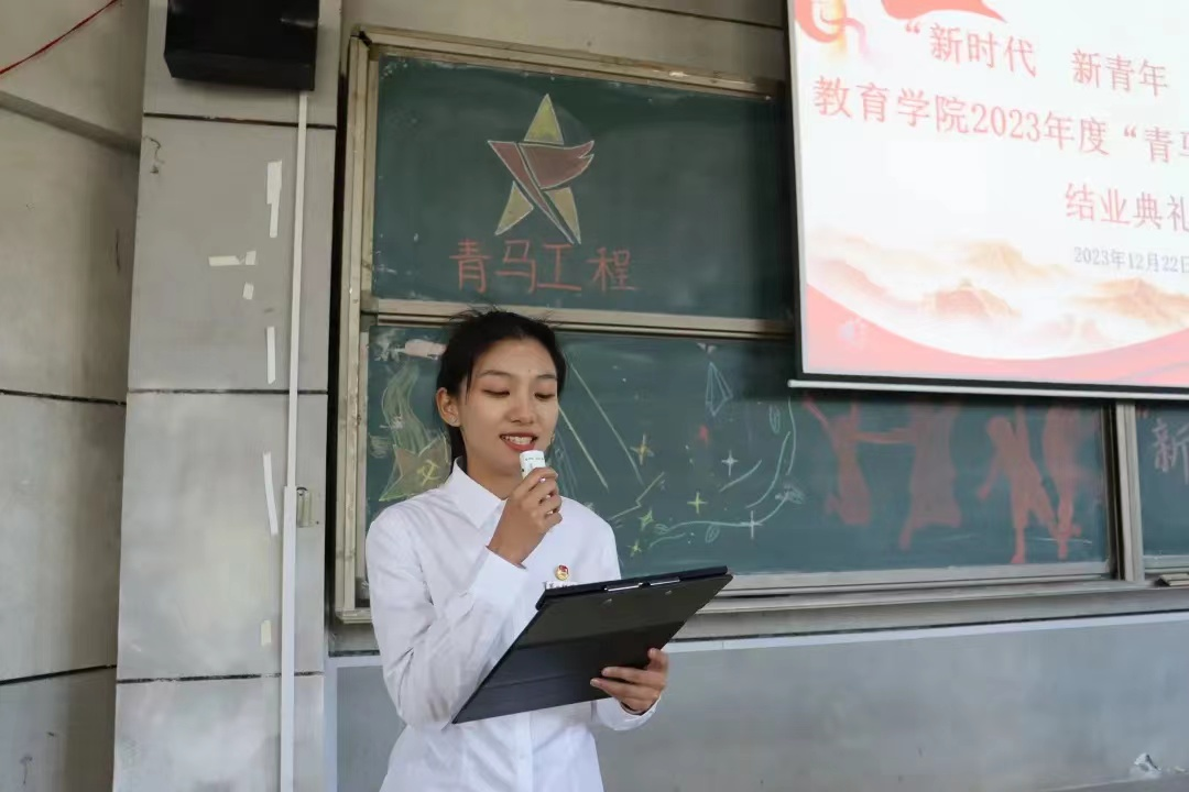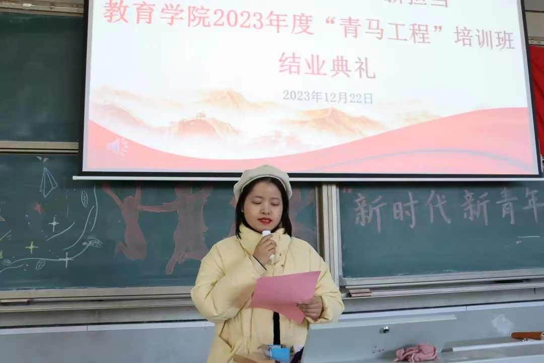 随后,教育学院辅导员杨菲老师宣读了《教育学院关于2023年度线下“青马”工程优秀学员的表彰决定》,文若湘等18名表现优异、成绩突出的“青马”骨干被评为“优秀学员”。在热烈的掌声中杨菲老师宣布教育学院2023年度青年马克思主义者培训班正式结业。