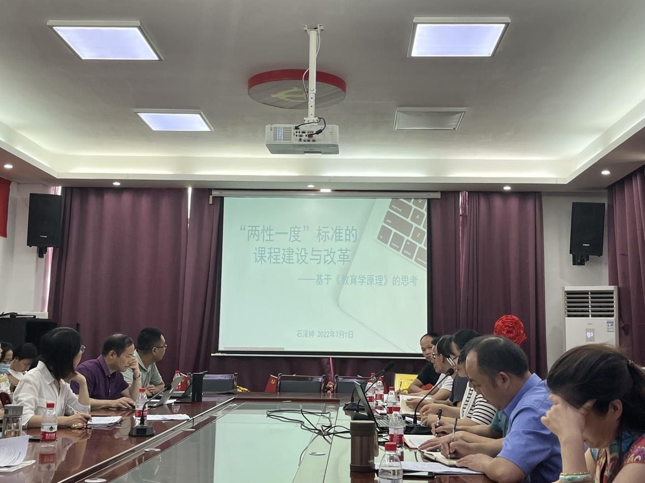 本次会议为院系开展后续深入研讨指明了方向,定好了目标。7月1日下午,各系部分课程组就如何落实“两性一度”本科教学改革进行了深入探讨。