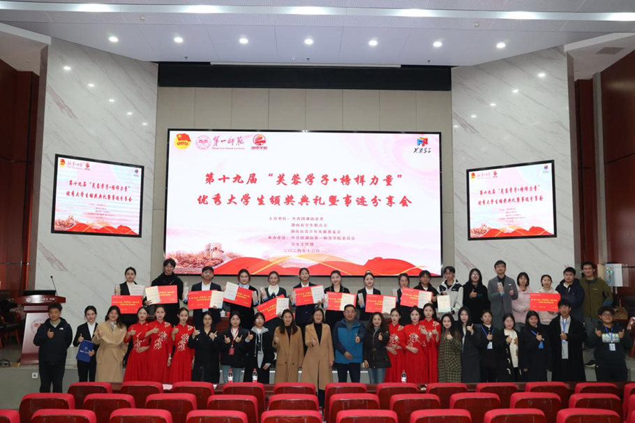 2024年12月17日下午,bevictor伟德官网第十九届“‘芙蓉学子·榜样力量”’优秀大学生颁奖典礼暨事迹分享会在百熙楼228会议室顺利举行。校党委委员、副校长蒋蓉、学生工作部部长周大庆、校团委副书记(主持工作)易利、各二级学院党委副书记、分团委书记等以及各学院学生代表参加。
