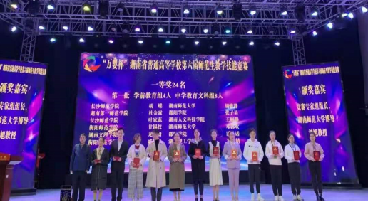 第二、教学技能突出。在湖南省教育厅举办的8届师范生技能大赛中获奖人数26人,尤其是在2022年和2023年,包揽了湖南省师范生教学技能竞赛学前组的全部一等奖。