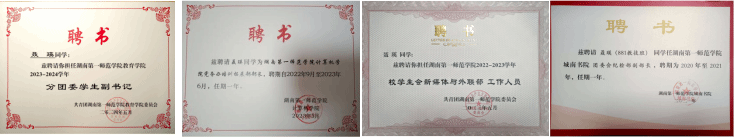在学院工作方面,该生秉承“全心全意为同学服务”的宗旨,坚持奉献在团学一线。入学以来,加入城南书院纪检部担任纪检部副部长;加入校学会新媒体与外联部任工作人员;加入计算机学院分党校校务办,担任2022-2023党务办培训拓展部部长;加入教育学院团委,担任2023-2024院分团委学生副书记一职。该生积极承担、认真完成老师布置的任务,为校院发展贡献自己的力量,为同学力所能及办“实事”,并多次荣获“优秀团干部”与“优秀学生干部”等荣誉。