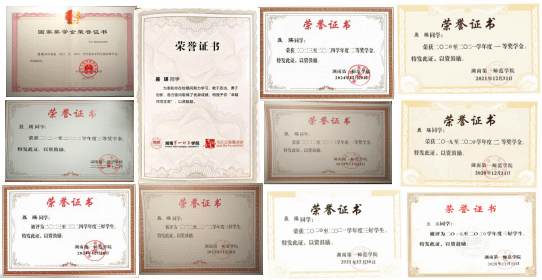 该生积极寻找团队向优秀的学姐学长学习,期间参与的大创项目“星火湘传—红色研学智慧云平台”获国家级立项,互联网+项目“茶行大众”获校级三等奖。进入大三后,通过整合所学经验,她开始主动挑战,在一次次的竞赛中,该生科研能力和专业技能迅速成长,期间作为核心成员参与的课题荣获省级立项,个人作品获第五届全国师范生微课大赛国家级二等奖,在蓝桥杯中获国家级三等奖、省级一等奖。