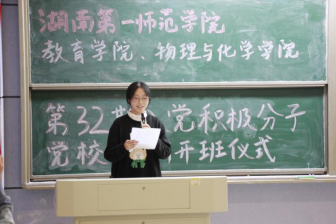 图为第32期入党积极分子代表开班仪式发言现场
