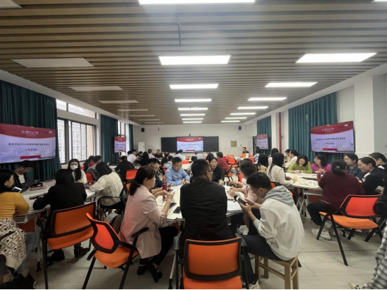 10月15日下午,在特立北401未来教室,教育学院举行了2023-2024年度第二学期“两性一度”金课建设汇报会。汇报会是深入贯彻落实学校本科教育教学改革“意见30条”的具体行动,也是校督导团和学院校院联动的课程建设与教学实施的观摩活动,旨在扎实推进金课建设,提升教学质量,促进教育创新。校督导团团长刘宇教授、校督导团成员刘明东教授、教学质量监控与教师发展中心主任廖小芒和美术设计学院副院长蔡惠萌等领导和专家应邀出席汇报会。教育学院全体教职工参加汇报会,汇报会由教育学院党委书记朱承学主持。